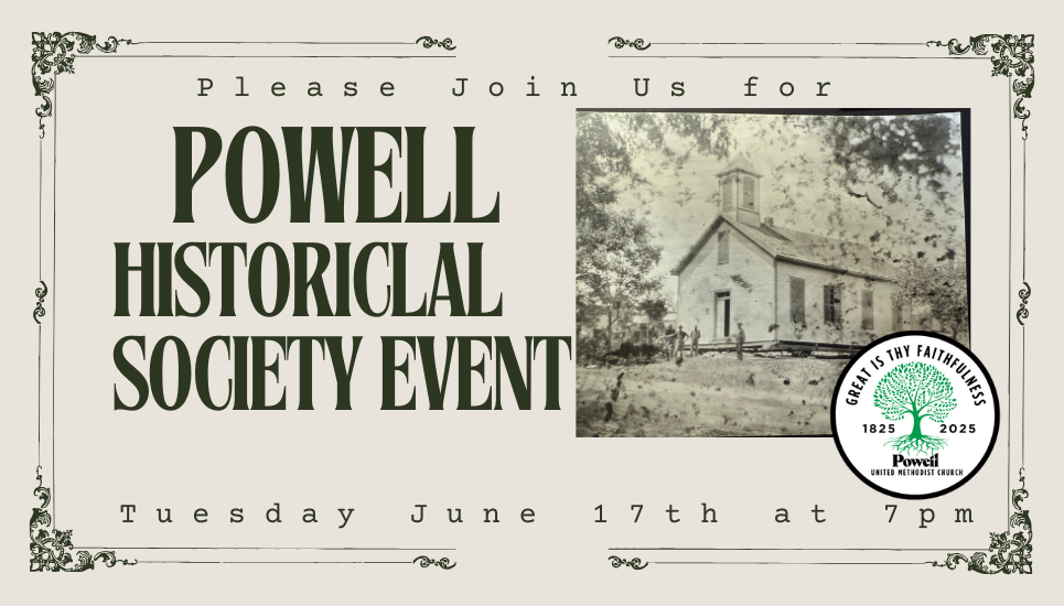 Next Sunday, October 12, we celebrate Powell UMC’s 200th anniversary! Plan to stay after 11am worship
